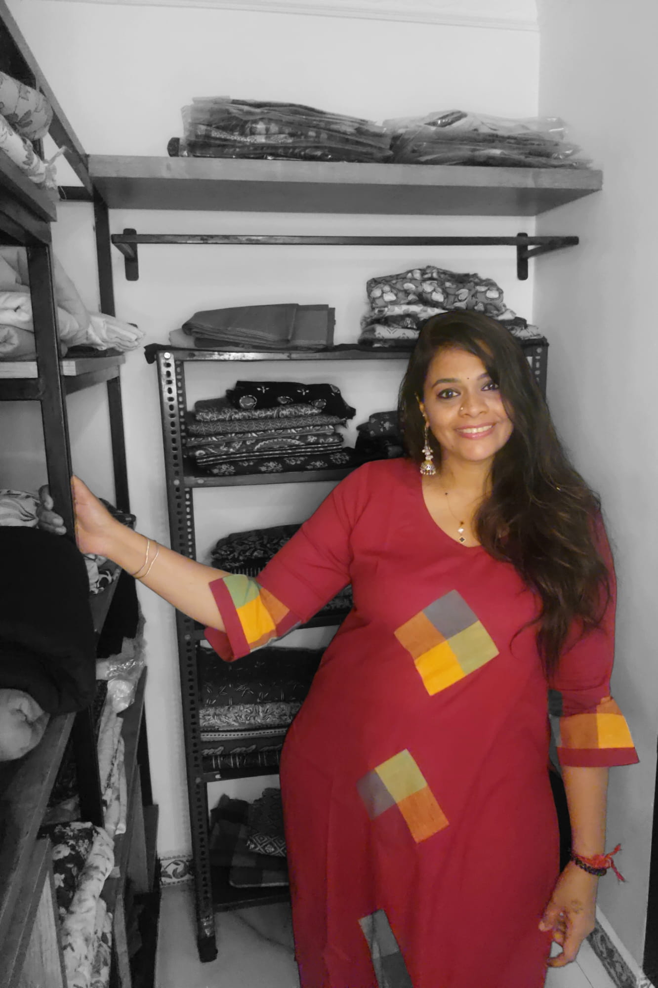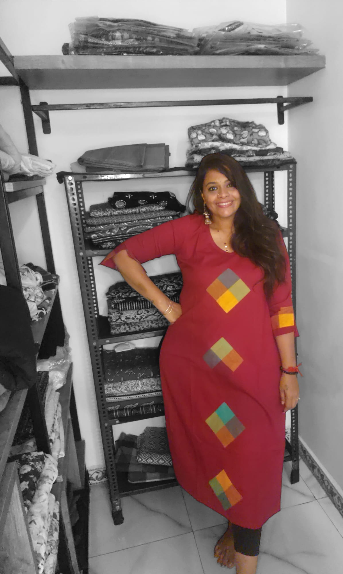 Patchwork Kurthi - Aaraku(Maroon)